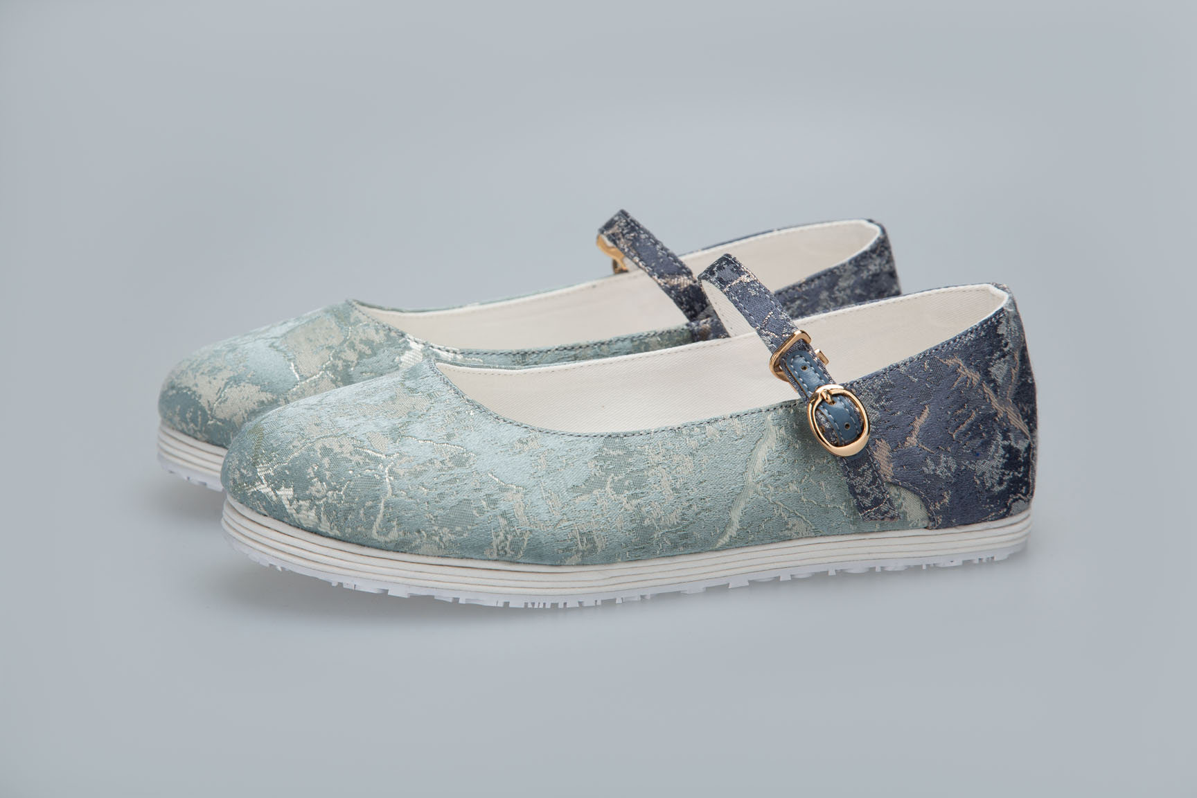 边福茂浅蓝色皱纹汉服鞋