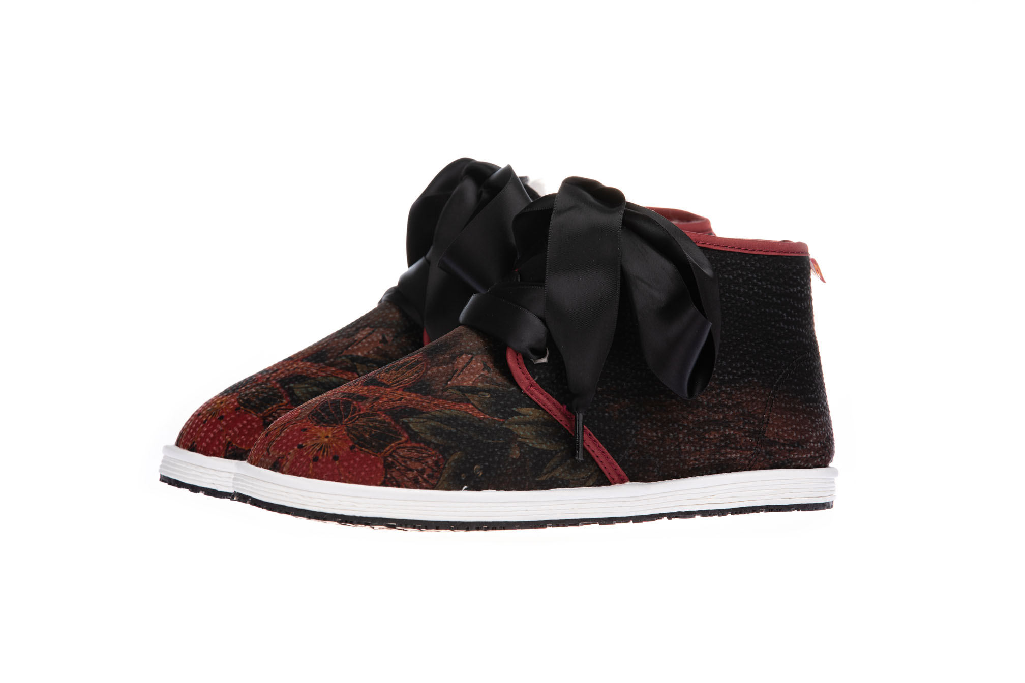 香云纱,贵族专享的高级衣料,被纺织界称为”软黄金“,入选国家级非遗;带有珍珠颗粒感的深色香云纱,像低调华丽的山川沟壑;深色暗纹花样,充满中国古典的抽象美,绝美的大地色系,典雅华贵;深色鞋身搭配白色鞋带,简洁有力又吸睛,还透着一股知性文艺的气息;内里填充羊毛,原料保暖、透气、不刺激、不闷脚;适合冬日外出逛街、开车办公久坐。¥ 0.00查看详情